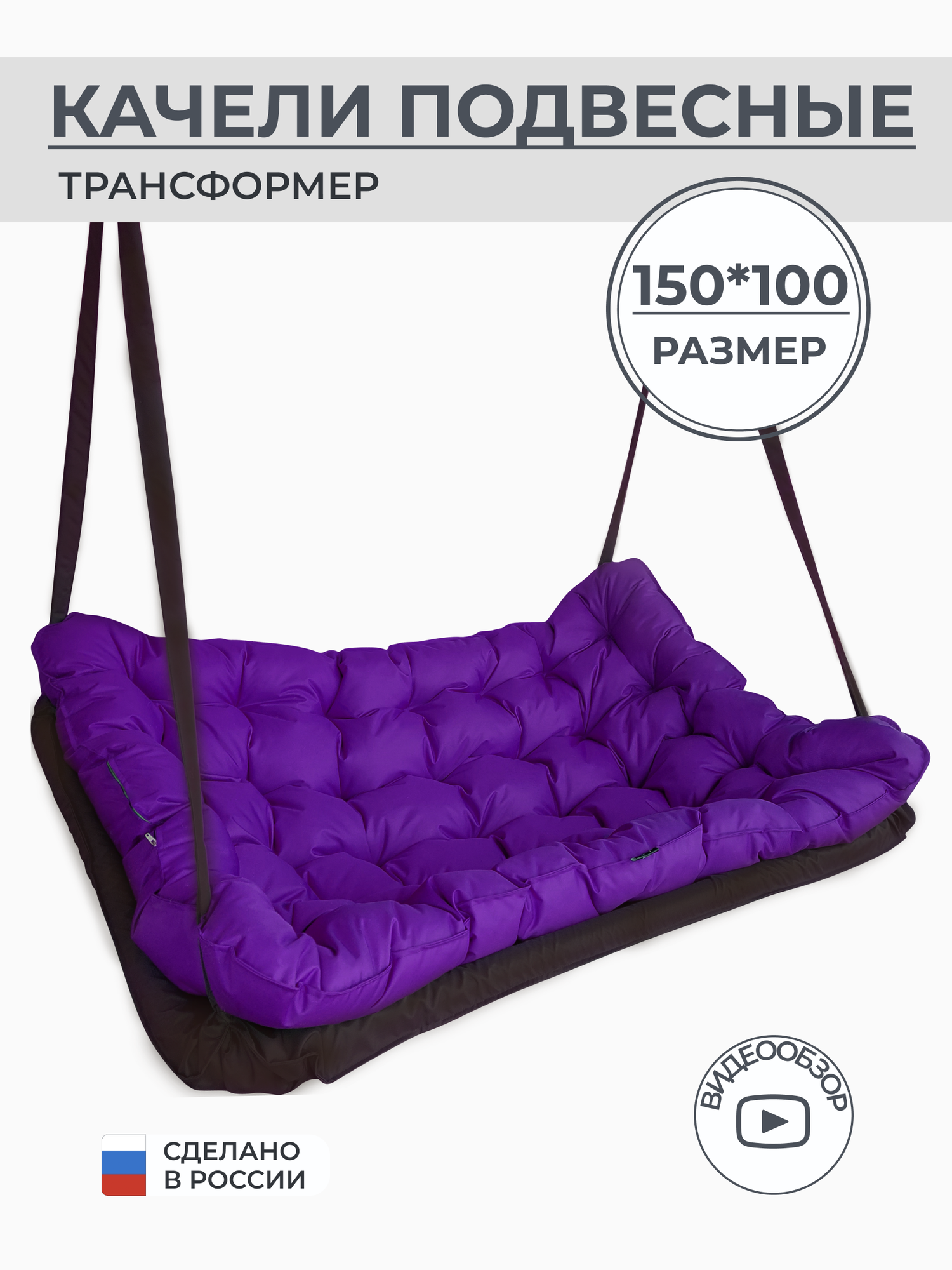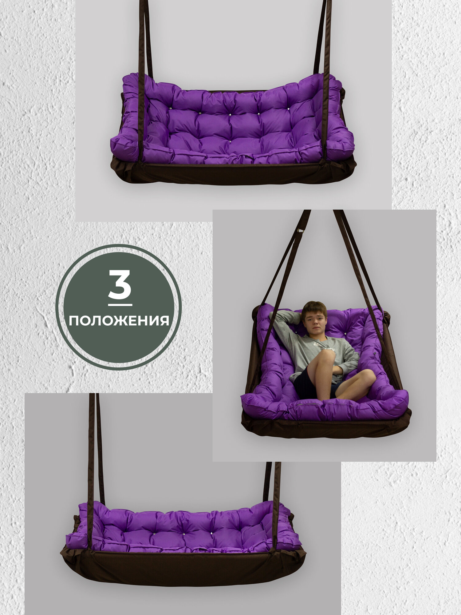 Купить Подвесные качели, качели садовые, диван 150*100, качели для дачи, уличные качели, качель коричневая с фиолетовой подушкой