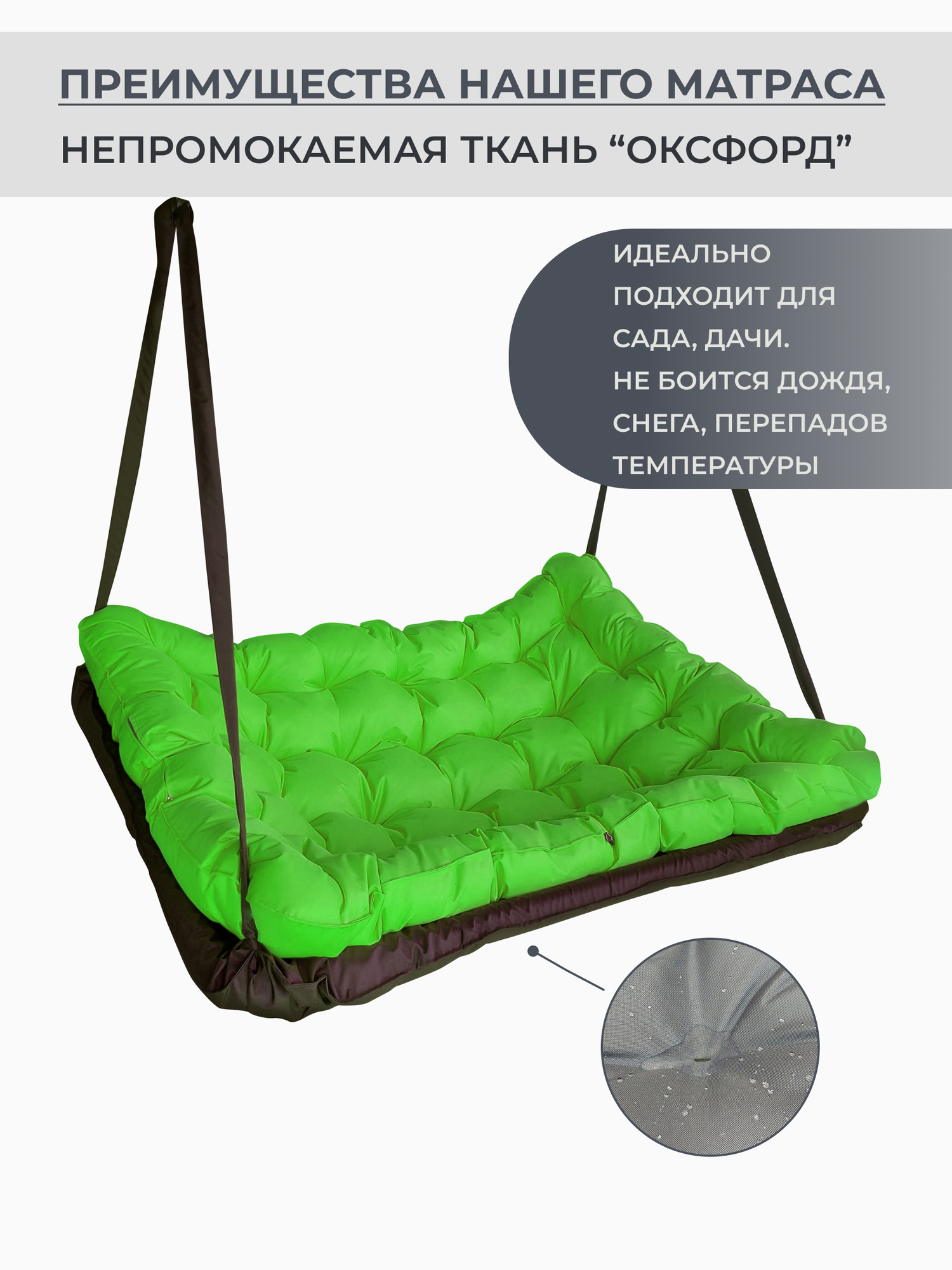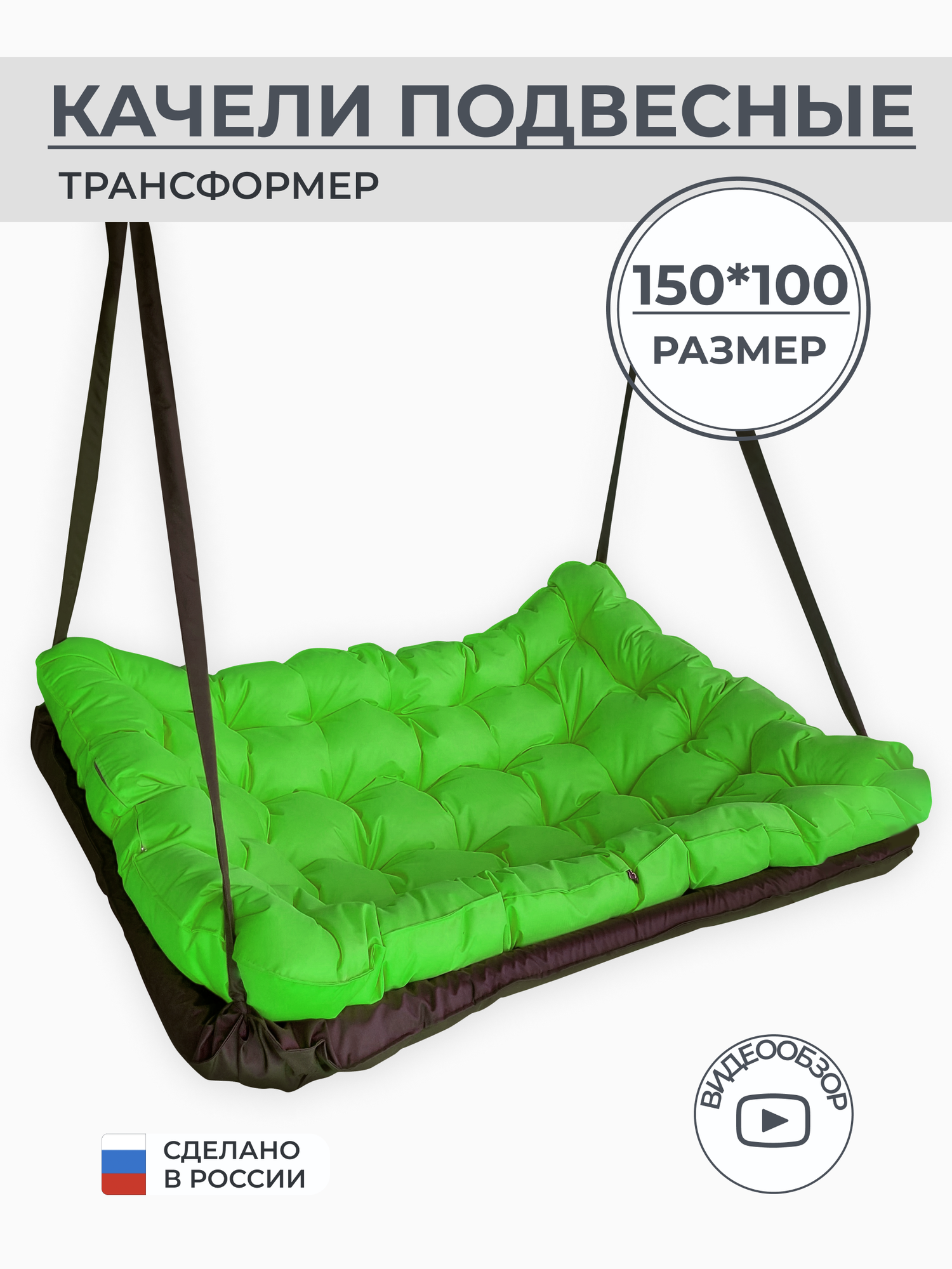 Купить Подвесные качели, качели садовые, диван 150*100, качели для дачи, уличные качели, качель коричневая с зеленой подушкой