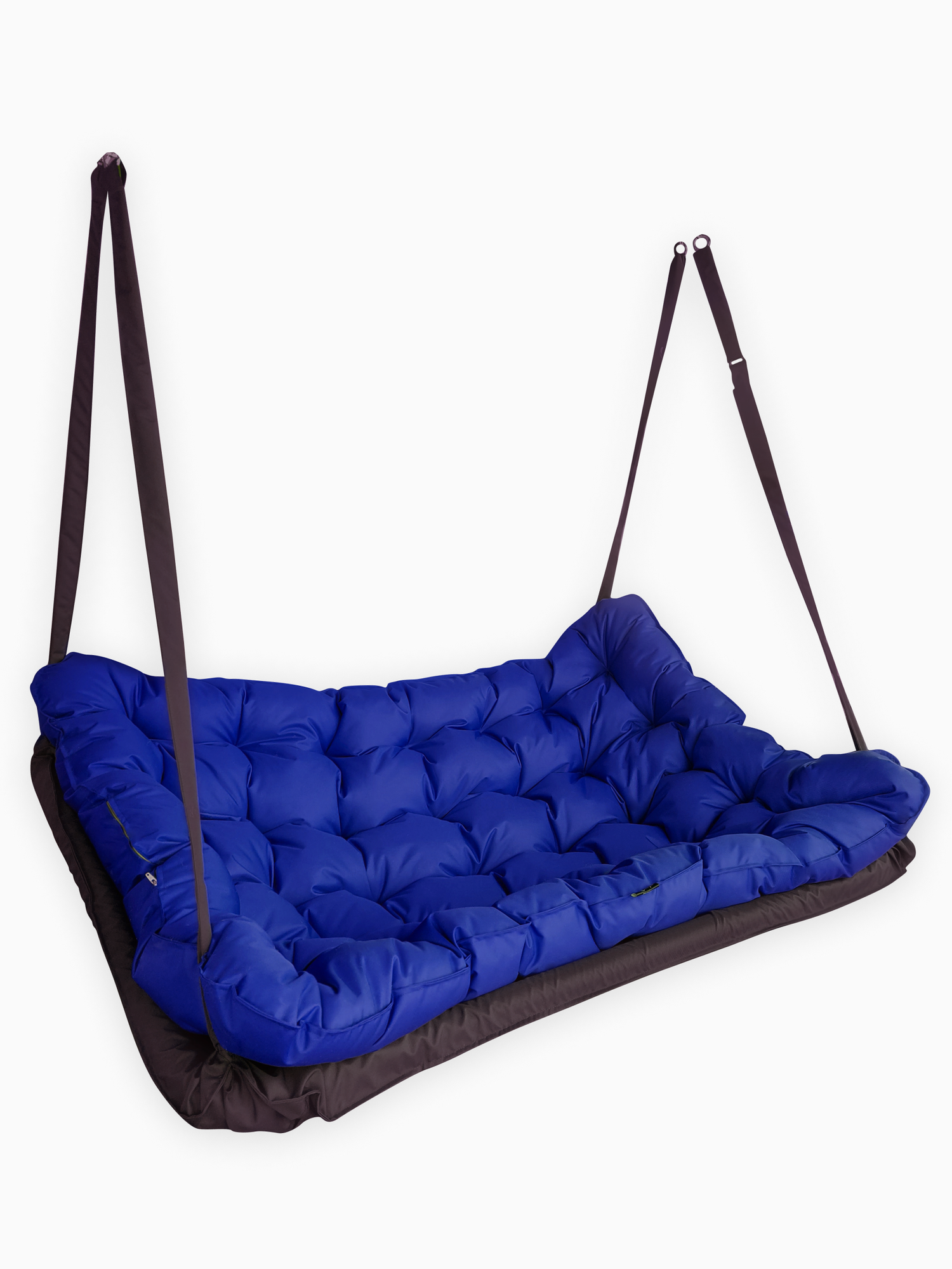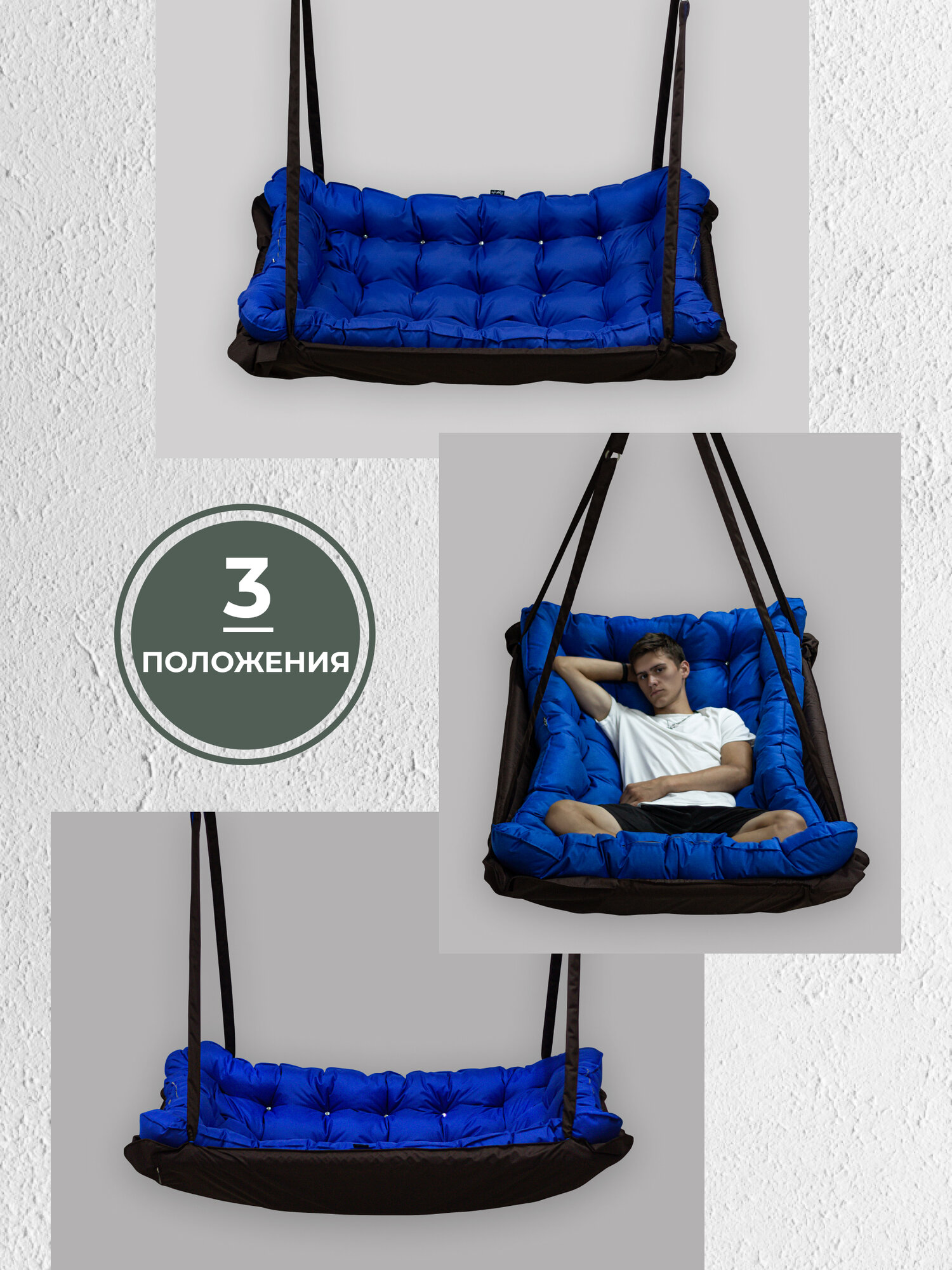 Купить Подвесные качели, качели садовые, диван 150*100, качели для дачи, уличные качели, качель коричневая с синей подушкой