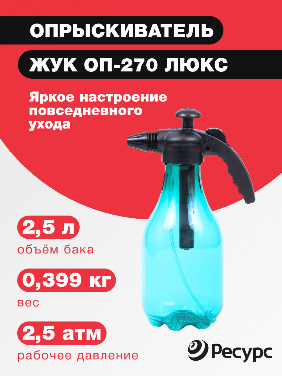 Опрыскиватель ЖУК люкс ОП-270; 2,5л прозрачный бак;регулируемый распыл от струи до тумана; гибкий шланг с утяжелителем; утопленный предохранительный клапан