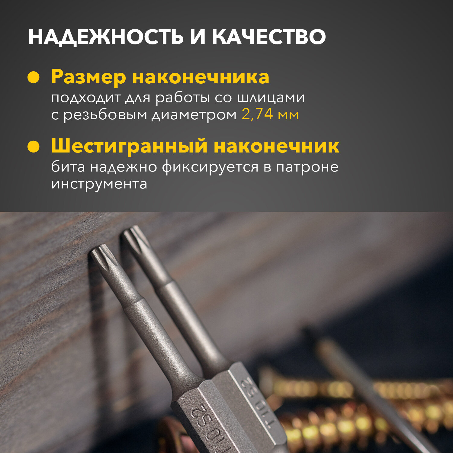 Бита износостойкая для шуруповерта KRANZ с магнитным наконечником Torx T10х50 мм, 2 штуки интересное: