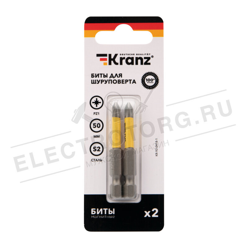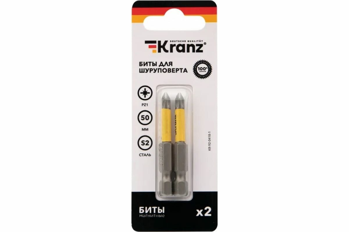 Бита для шуруповерта PZ1х50 мм (2 шт./уп.) ,Kranz
