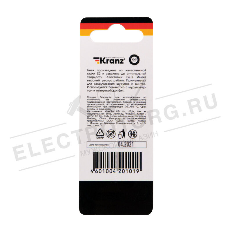 Бита для шуруповерта PZ1х50 мм (2 шт./уп.) Kranz (цена за упак) KR-92-0418-1