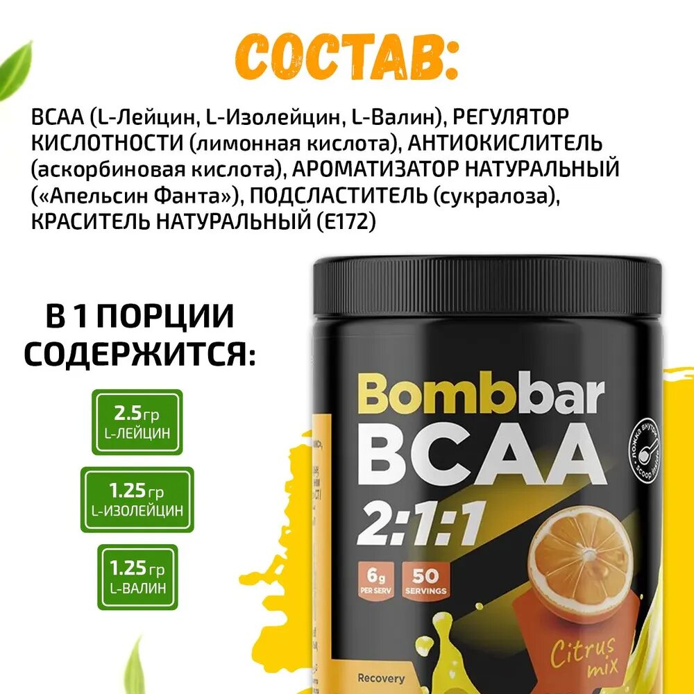 Bombbar, BCAA 2:1:1, 300г (Цитрусовый микс) интересное: