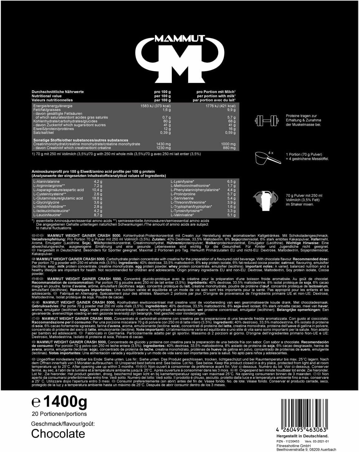 Mammut Nutrition Weight Gainer Crash 5000 1400g (Шоколад)