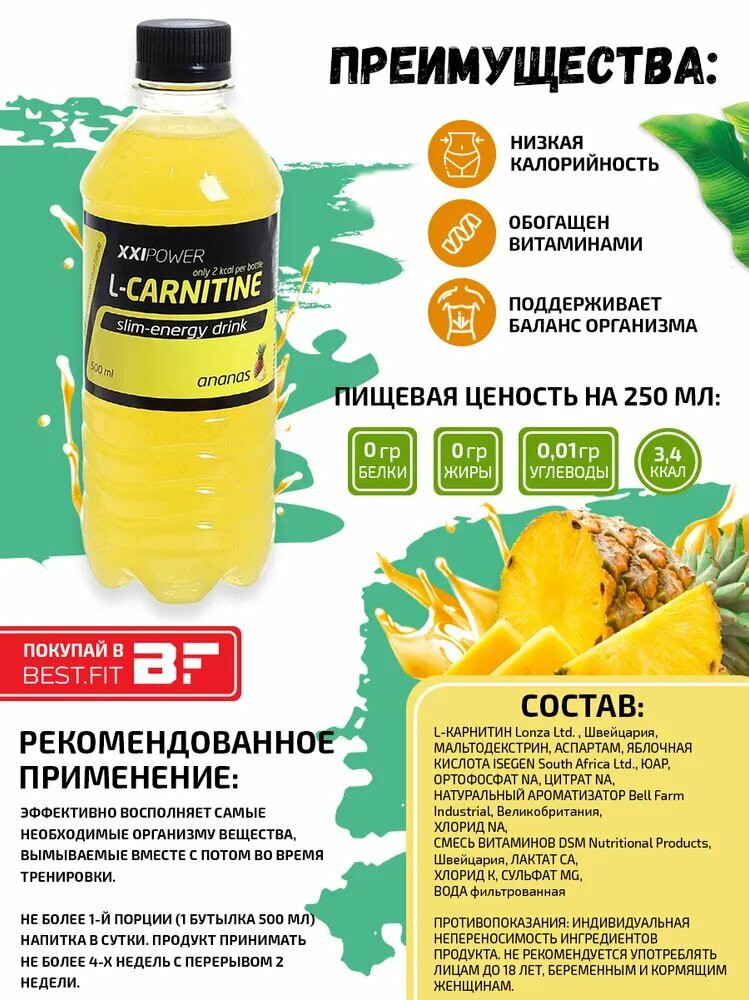 XXI Power, L-Carnitine 1200mg, 10х0,5л (ананас) интересное: