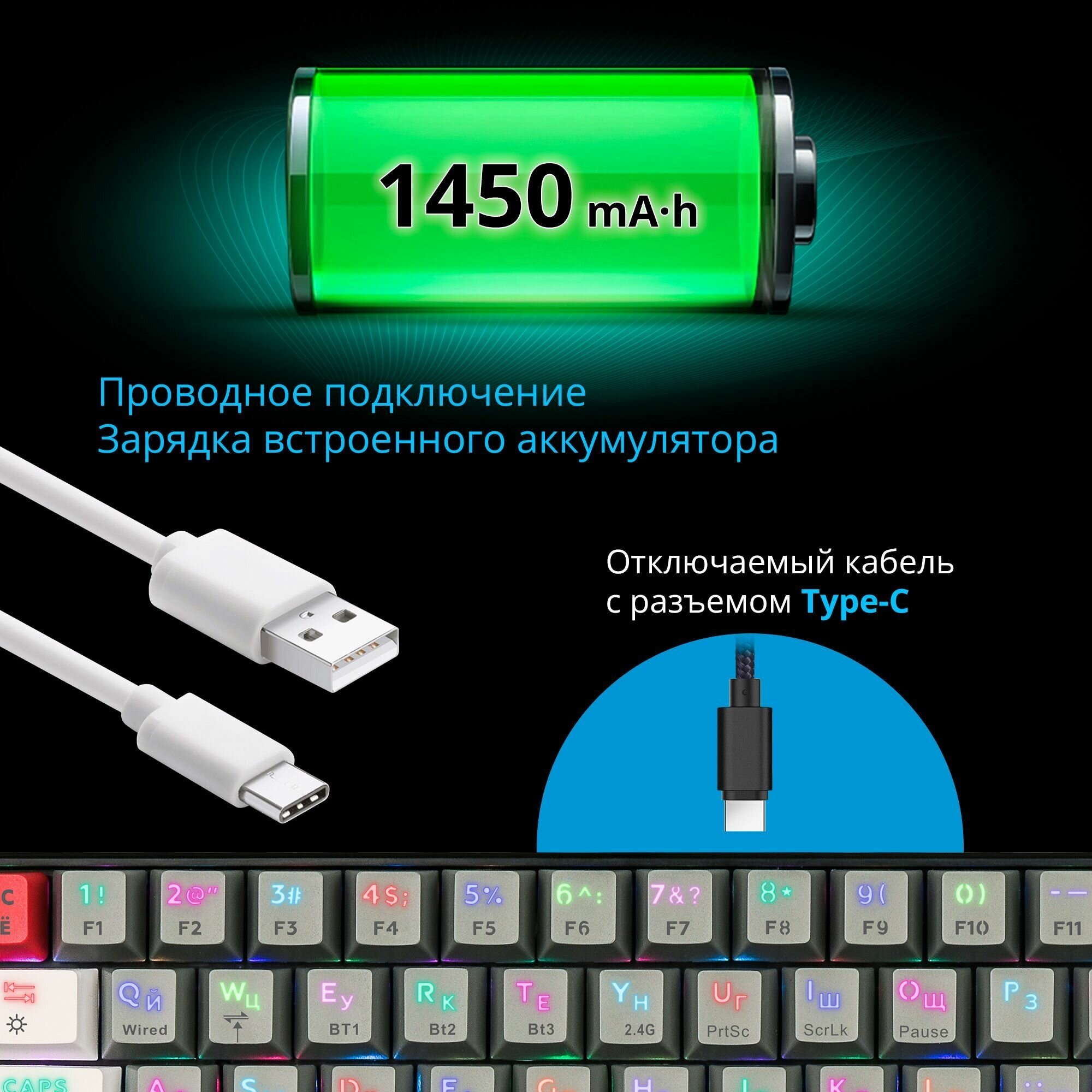 - Сменные кейкапы - Настройка подсветки - Звук |