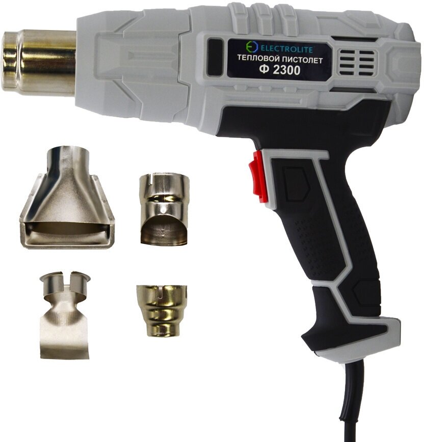 Фен строительный / технический ELECTROLITE Ф 2300 ( 2300 Вт, 220 В, 400/600 С, 300/500 л/мин, резиновая рукоять )