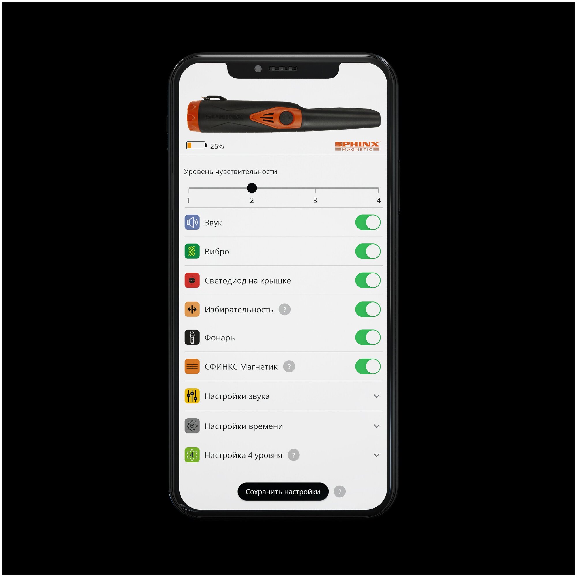 Пинпоинтер SPHINX 03 Magnetic Black (Черный, Амфибия, авто выключение в кобуре)