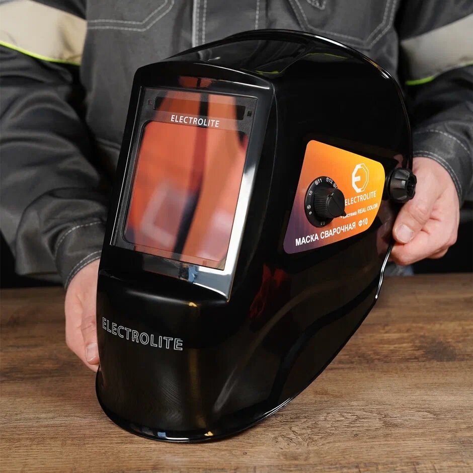 Сварочная маска хамелеон / Маска сварщика с автозатемнением ELECTROLITE Ф10 ( 9-13 DIN, кол-во датчиков 4, MMA.MIG.MAG.TIG, ударопрочный пластик) интересное: