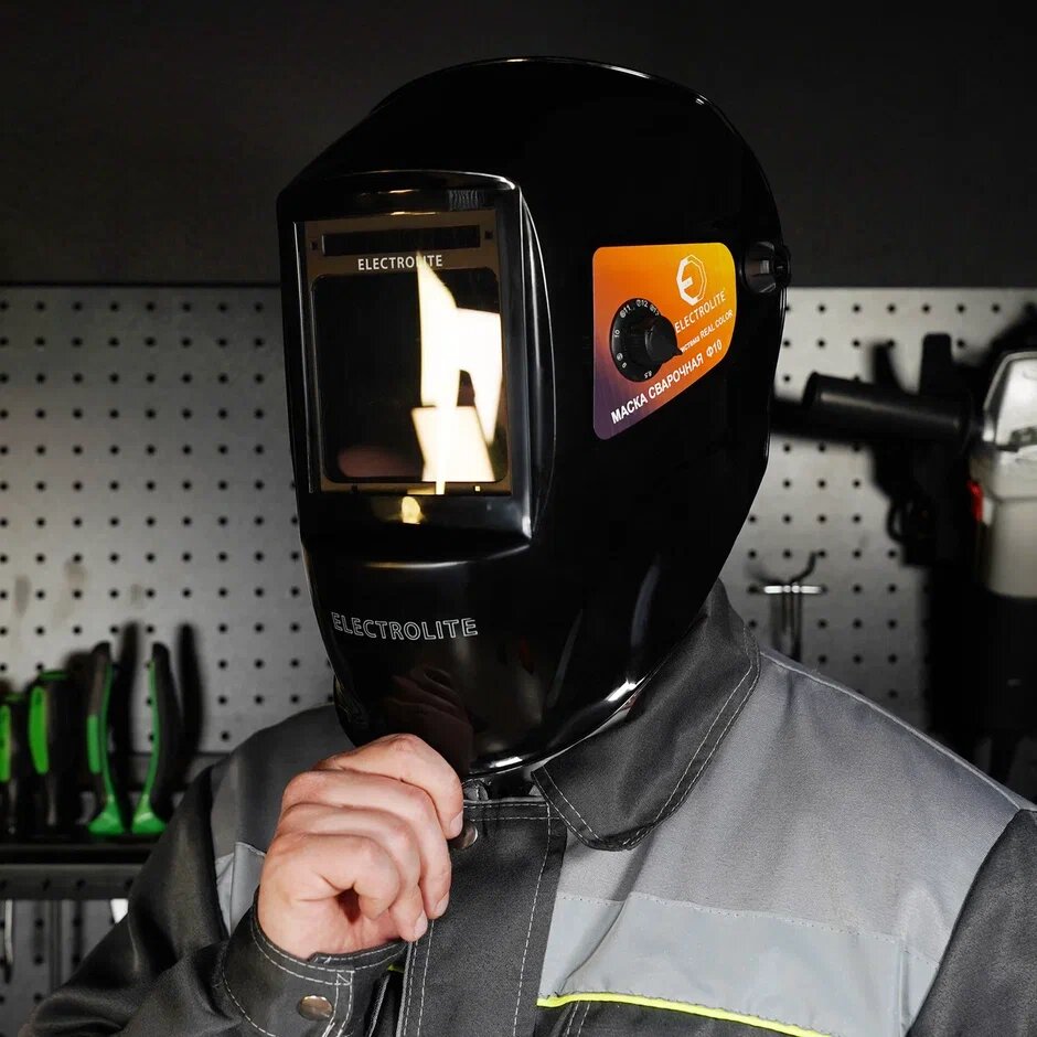 Маска сварочная хамелеон самозатемняющаяся Electrolite Ф10 (4/5-8/9-13 DIN солнечная батарея + АКБ)