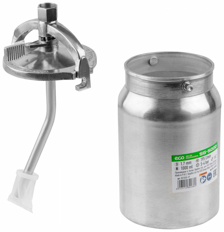 Краскораспылитель ECO SG-5000 (сопло ф 1.7 мм) (HVLP, сопло ф 1.7 мм, нижн. бак 1000 мл) (EC1533-17)