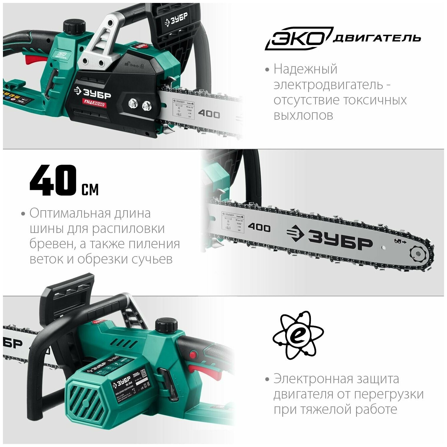 ЗУБР 2200 Вт, 40 см шина, пила цепная электрическая ПЦ-2240 Мастер