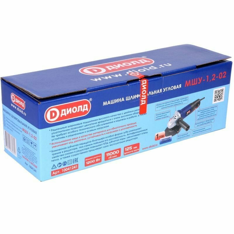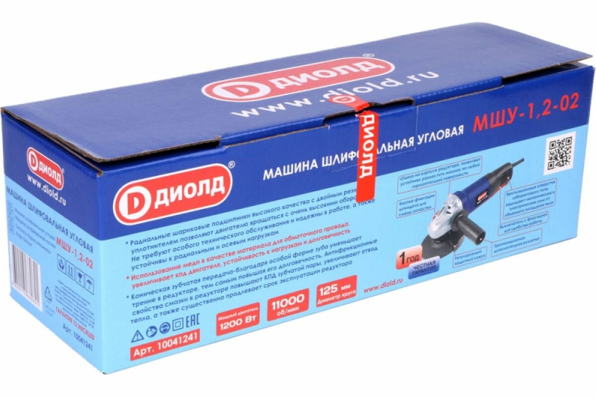 Машина шлифовальная (болгарка) Диолд МШУ-1,2-02, 1200 Вт, 125 мм, 11000 об/мин, производитель Россия