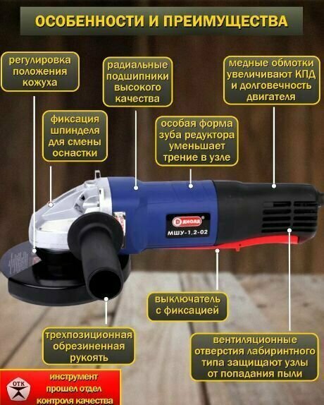 Угловая шлифмашина Диолд МШУ-1,2-02, 1200 Вт интересное: