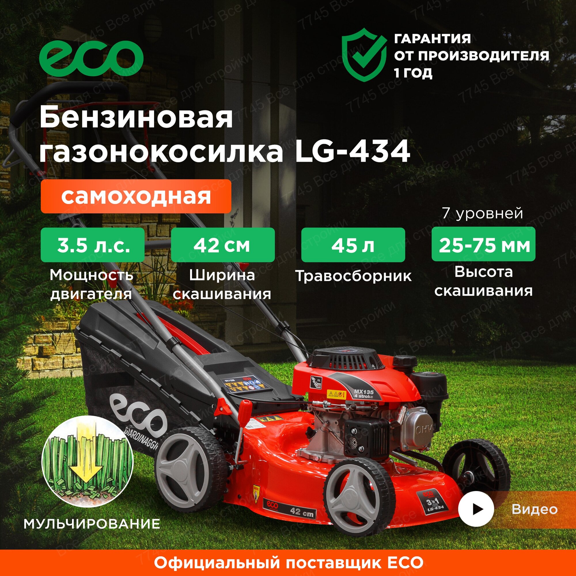 СохранитьГазонокосилка бензиновая ECO LG-434 самоходная интересное:
