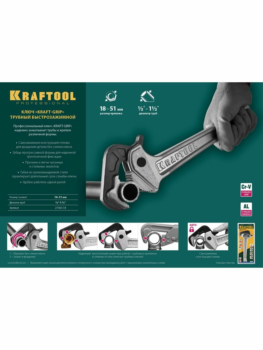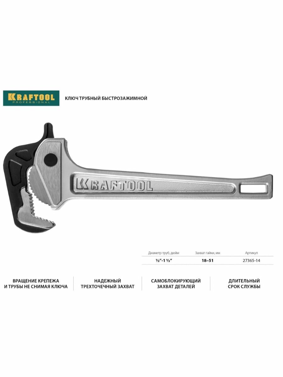 Ключ трубный Kraftool 27365-14 Kraftgrip быстрозажимной, кованые губки, 1/2 1 1/2 27365-14 .