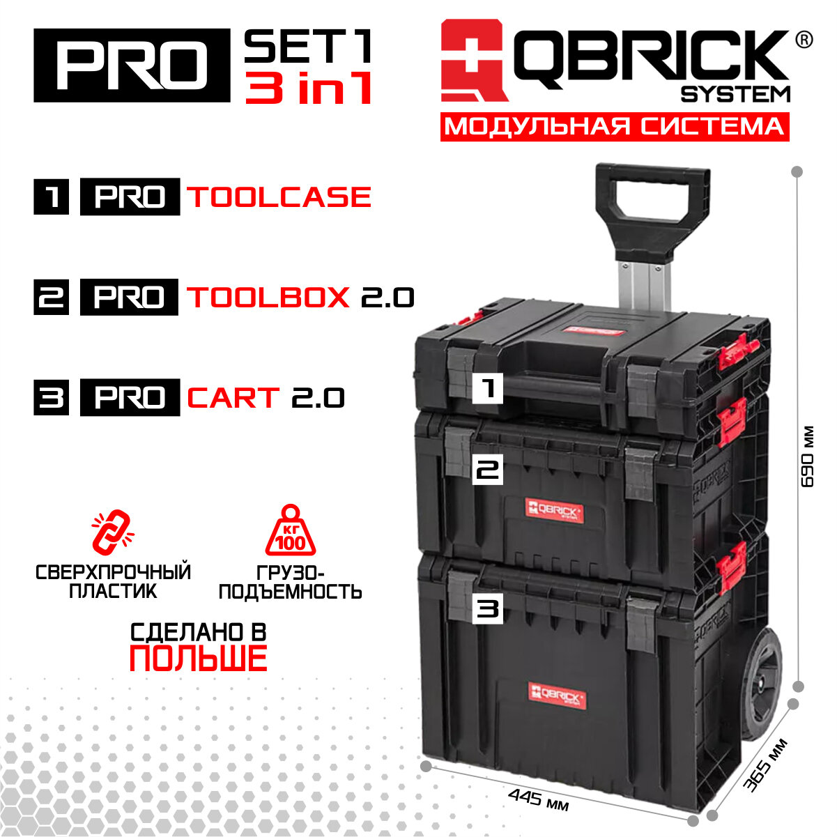 Набор ящиков Qbrick System PRO Set 1 (3-в-1: PRO Cart, PRO Toolbox, PRO Toolcase)