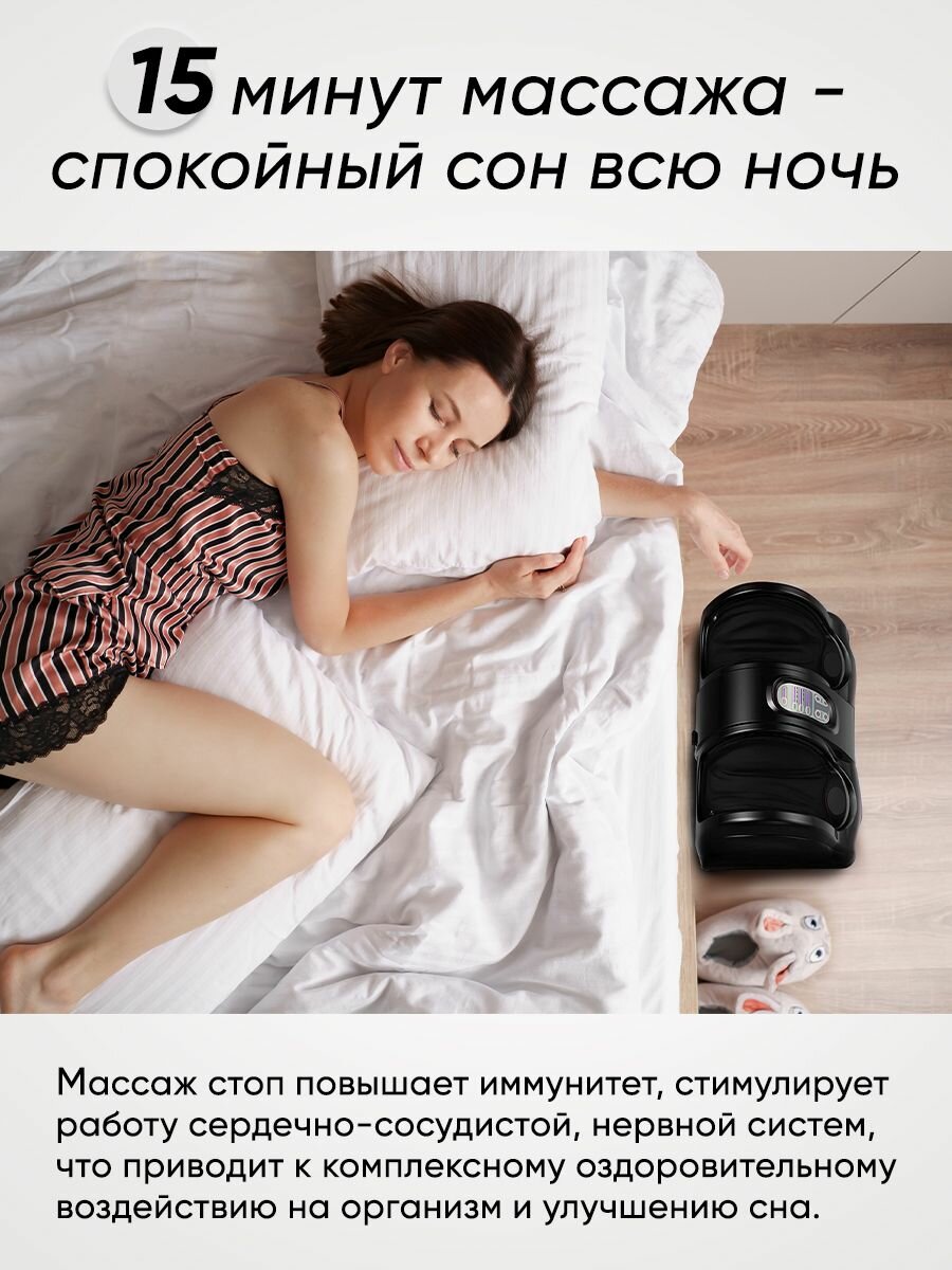 | Плюсы: | Массажёр понравился!! Массаж делает очень приятный, после рабочего дня на ногах то, что нужно. Понравилось, что можно выбирать и подстраивать режимы и то что есть пульт. |