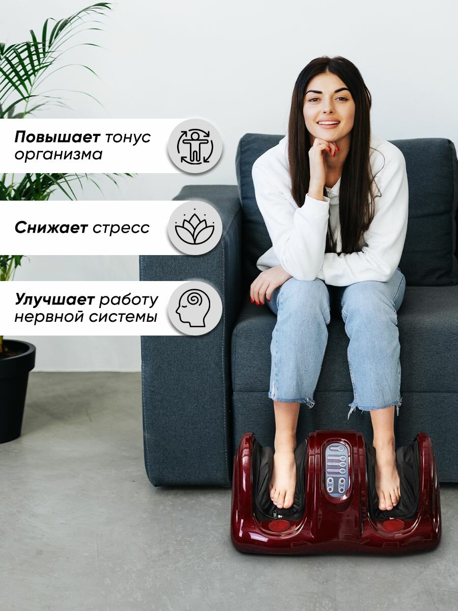 СохранитьМассажер для ног, стоп, рук и икр электрический Classmark Шиацу с пультом ДУ, выбор зоны массажа, 4 автоматических программы, регулировка скорости и интенсивности / вибромассажер, бордовый интересное: