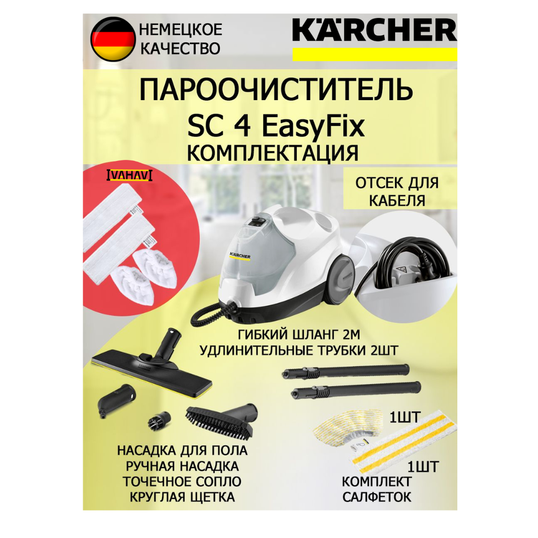 Пароочиститель Karcher SC 4 EasyFix Wipe белый+4 насадки интересное: