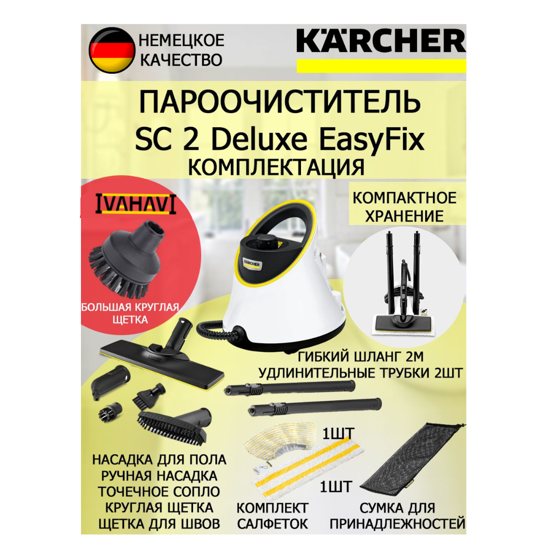Пароочиститель Karcher SC 2 Deluxe EasyFix белый+большая круглая щетка интересное: