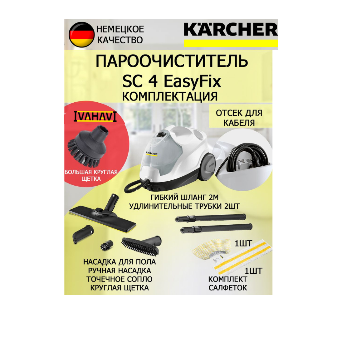 Пароочиститель Karcher SC 4 EasyFix белый + большая круглая щетка интересное: