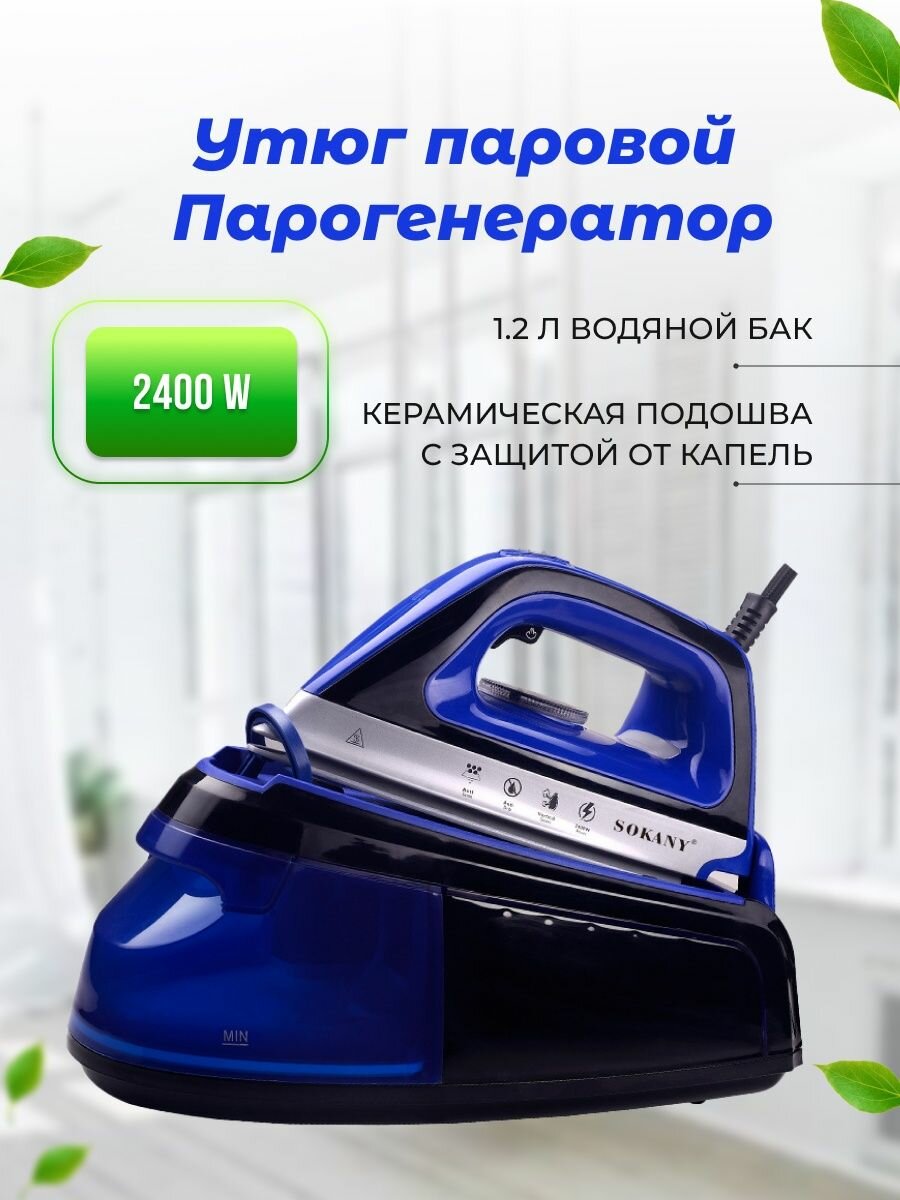 Утюг со станцией /Sokany /Power 2400 ВТ/ Объем 1,2 л/ Парогенератор/мощная подача пара/синий-черный интересное: