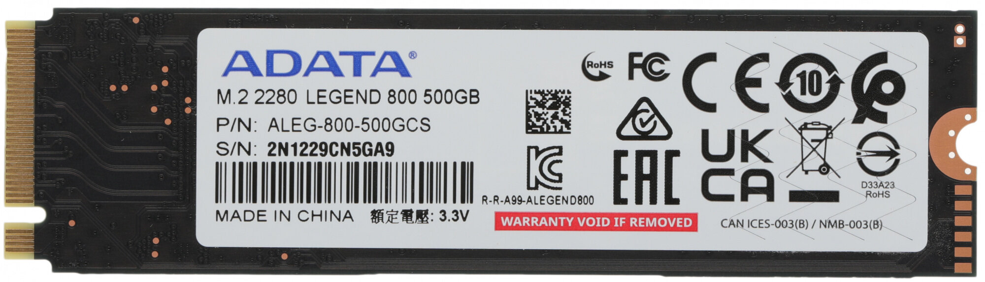 SSD накопитель A-Data Legend 800 ALEG-800-500GCS 500ГБ, M.2 2280, PCIe 4.0 x4, NVMe, M.2