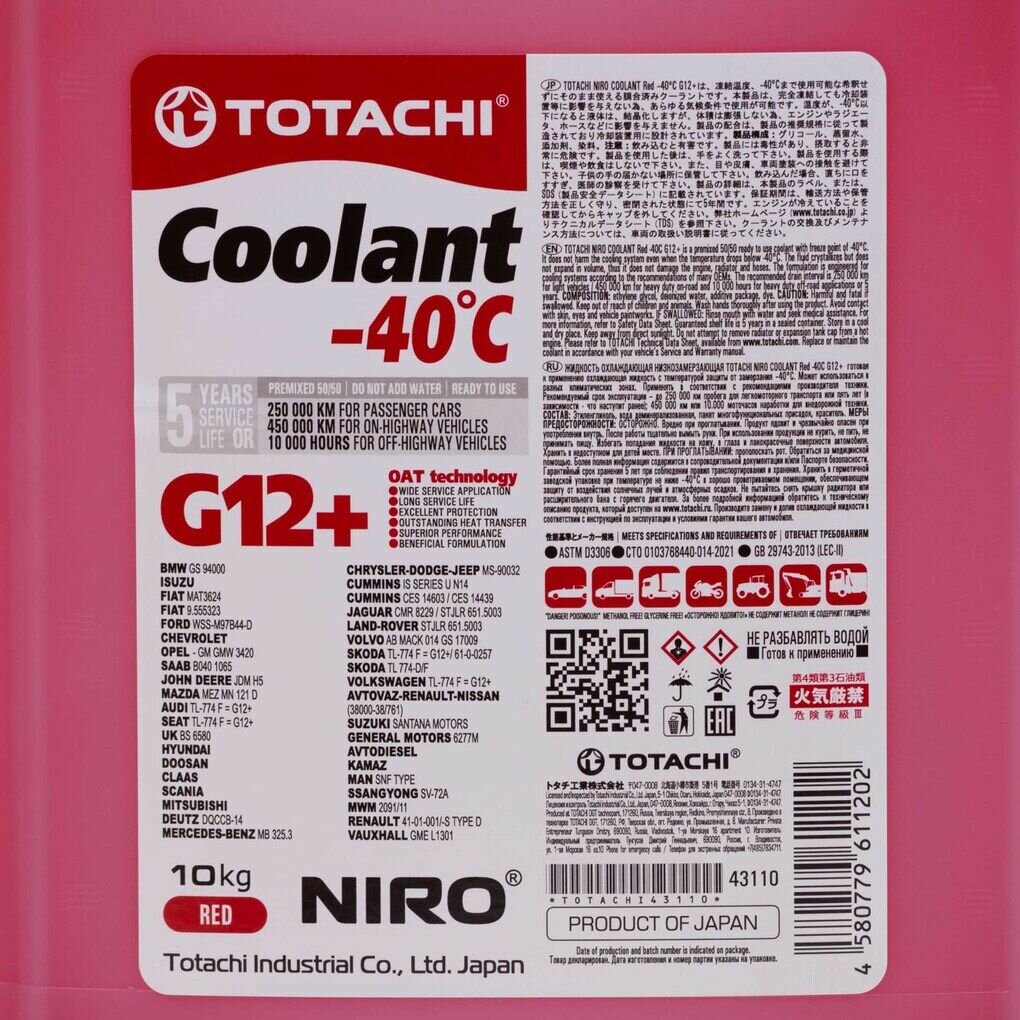 Антифриз TOTACHI -40C (красный) готовый 10 кг интересное:
