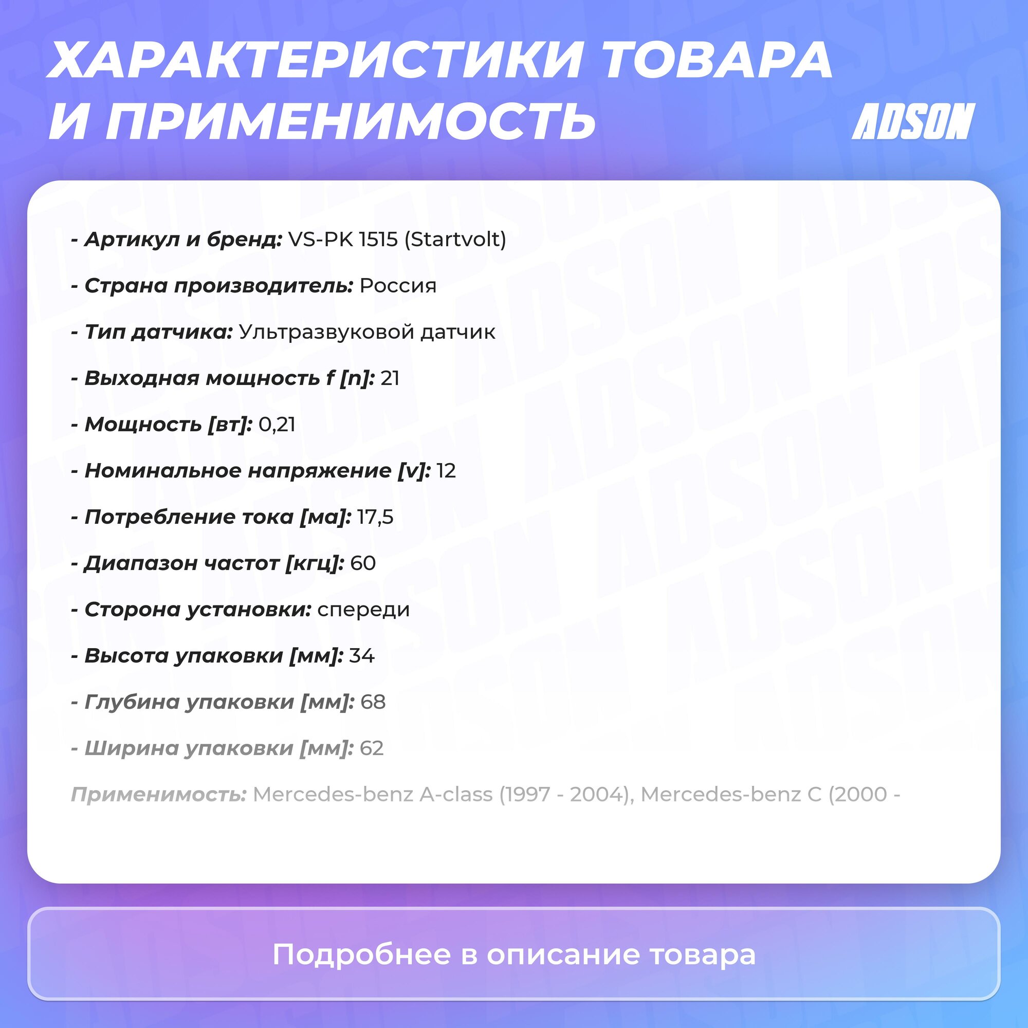 СохранитьДатчик Парковки Vspk1515 STARTVOLT арт. VS-PK 1515 интересное: