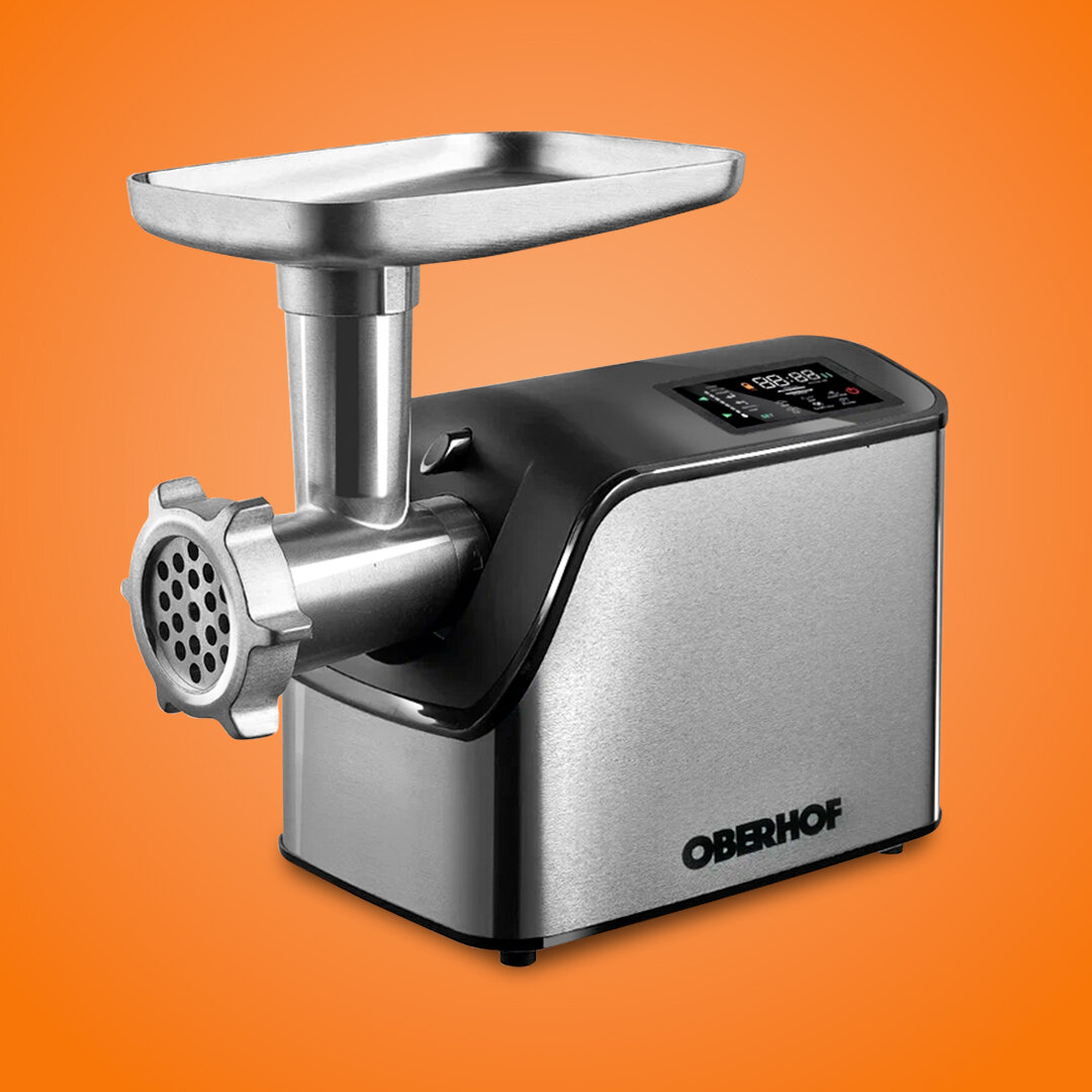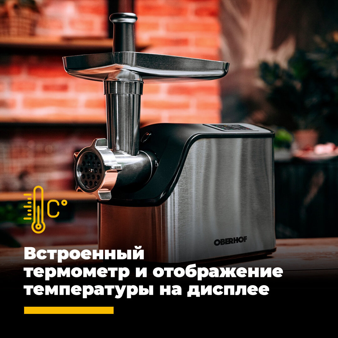 Умная электрическая мясорубка, ЖК дисплей, 6 авто программ, умный термометр, таймер, насадки для колбасок, кеббе, 3 диска в комплекте 3мм, 5мм, 7мм, 1600 Вт, 2,5 кг в минуту Oberhof Magnum R-16 интересное: