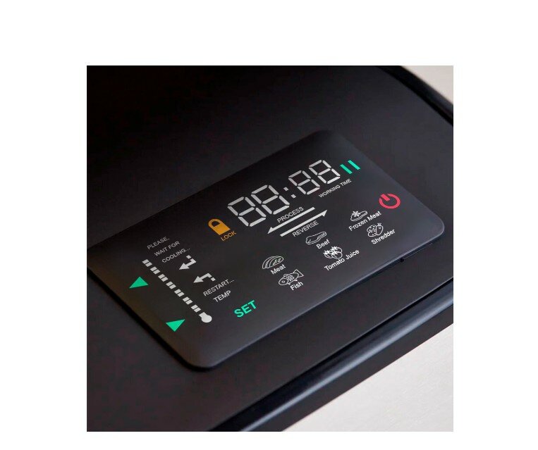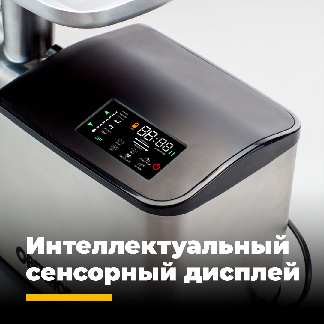Скорость переработки мяса в фарш, качество фарша, стиль, качество исполнения, электронный дисплей, 6 автоматических программ, функция автоотключения при перегреве,