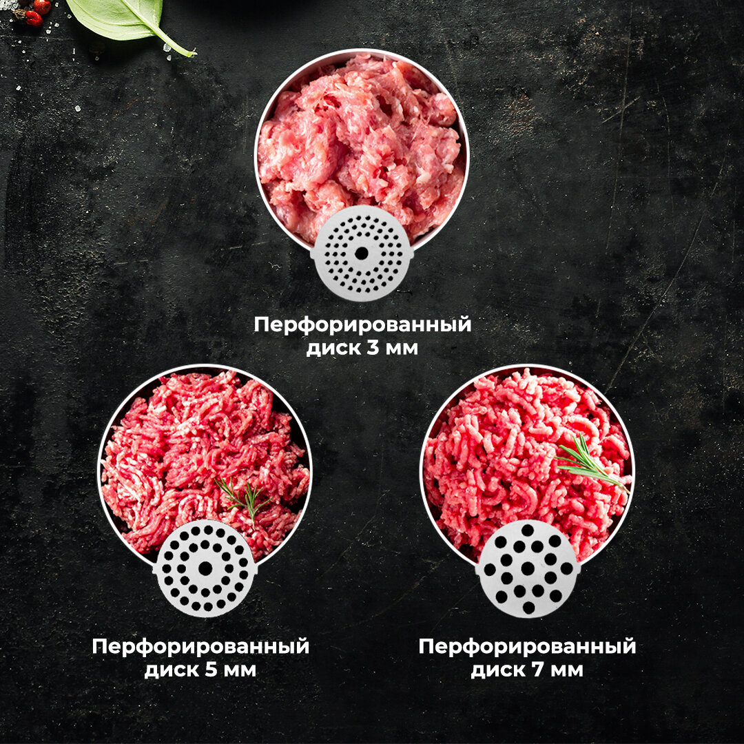 Мясорубка отличная, справляется с перемолом мяса на ура. В компрометацию так же входят насадки для кеббе и колбасок. Быстро и качественно молит фарш. Практически бесшумная, стильная, крутая мясорубка. Я довольна своей покупкой, теперь заготовки в морозилку делаю намного быстрее, чем своей старой ручной мясорубкой. Есть различные диски для разного помола, из самой мелкой на 3мм, делаю младшему сыну пюре и паштет. Из покрупнее на 5мм делаю законовед из сыра, а так же для приготовления фарша. А из 7мм делаю фарш на колбаски, все продумано, спасибо.