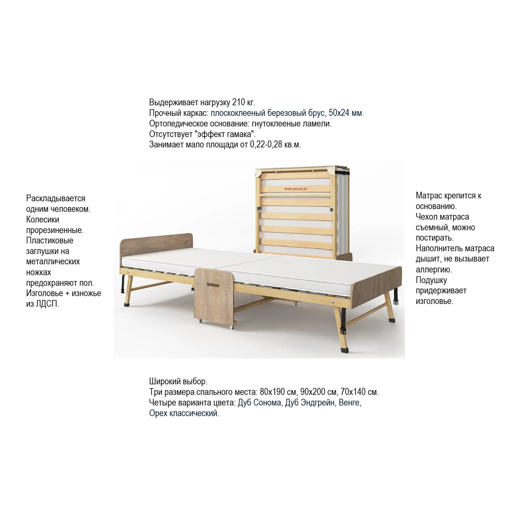 Раскладушка Dr.Bronz Основа Сна Classic 80*190 см ортопедическая Дуб Сонома / раскладушка с матрасом / тумба раскладушка / раскладная кровать