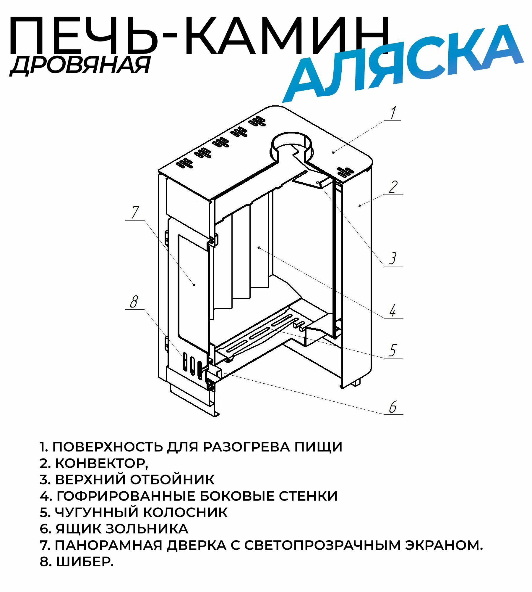 Дровяная печь каминного типа Аляска 150
