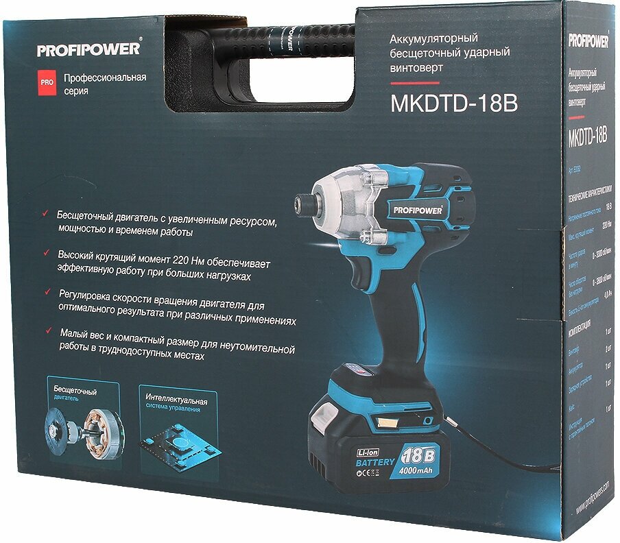 Бесщеточный Аккумуляторный ударный винтоверт Profipower 18В, MKDTD-18V