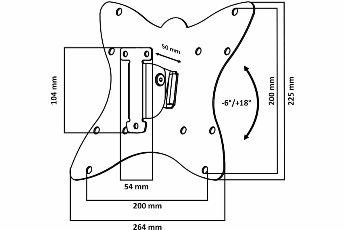Кронштейн LST-201.02, для ТВ, наклонный, 10"-55", 50 мм от стены, черный