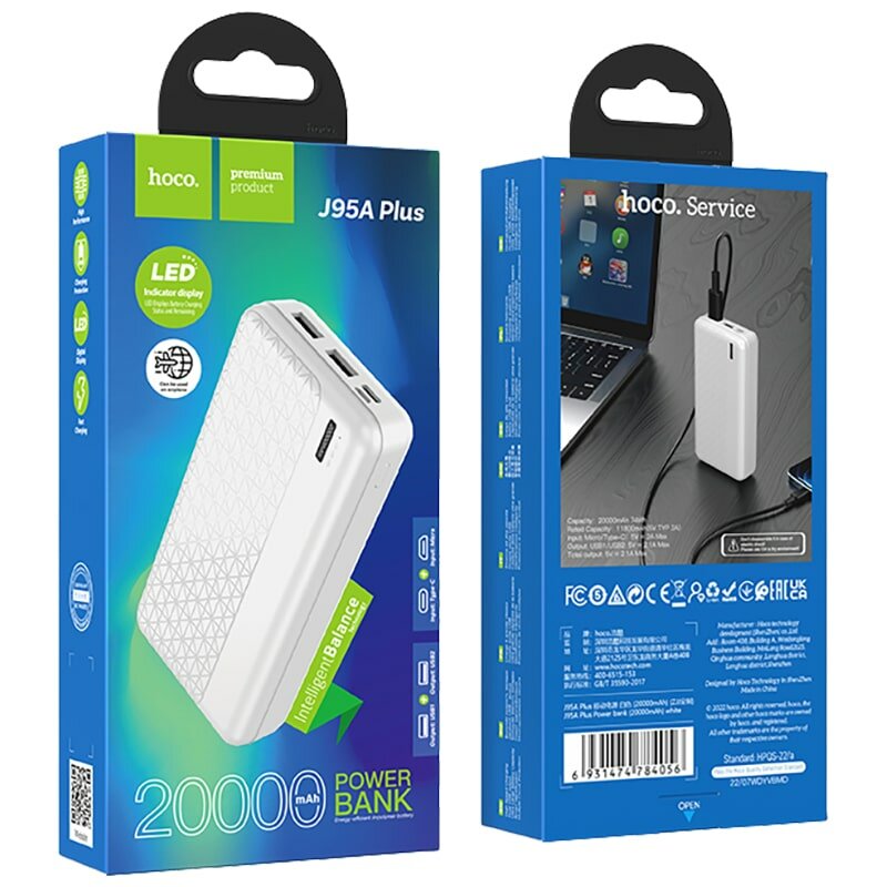 Портативный аккумулятор HOCO J95A Plus White 20000mAh интересное: