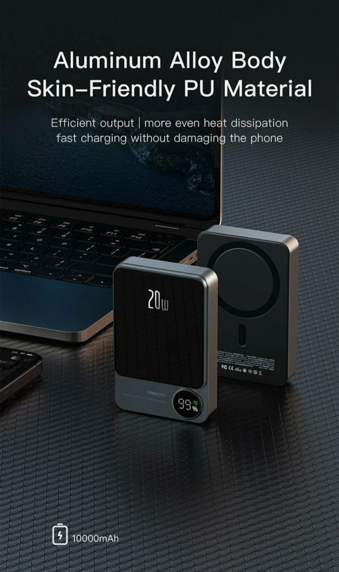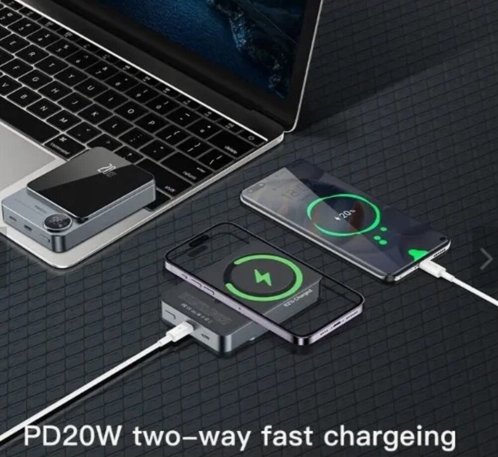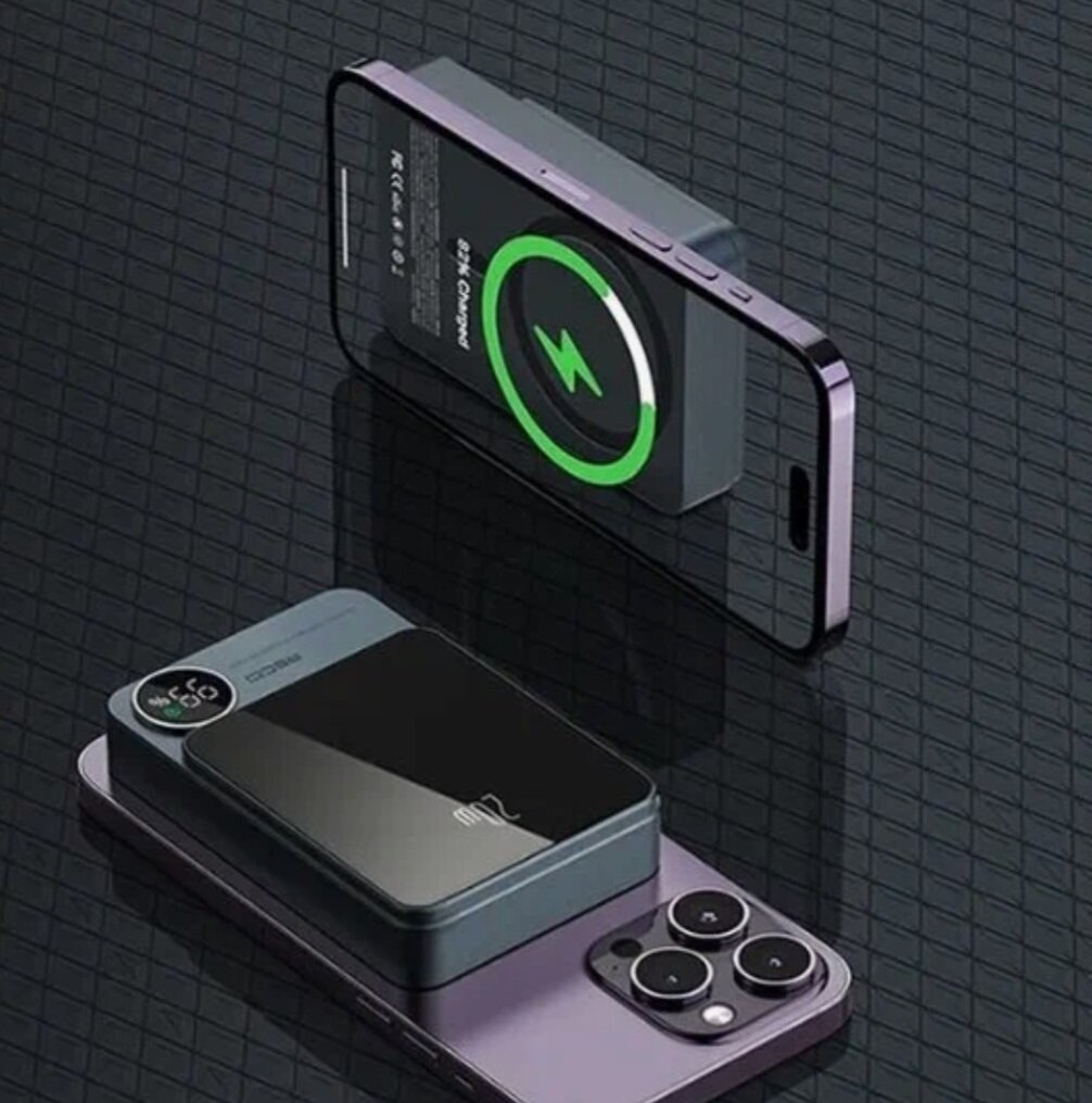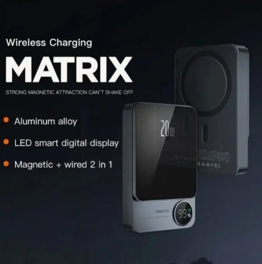Внешний магнитный беспроводной аккумулятор RECCI Matrix, 5000 mAh, Qi15W/PD20W, Cерый интересное: