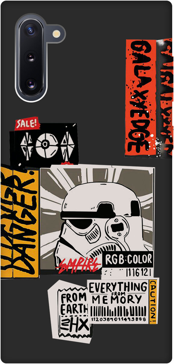 Купить Матовый Soft Touch силиконовый чехол на Samsung Galaxy Note 10, Самсунг Ноут 10 с 3D принтом "Stormtrooper Stickers" черный