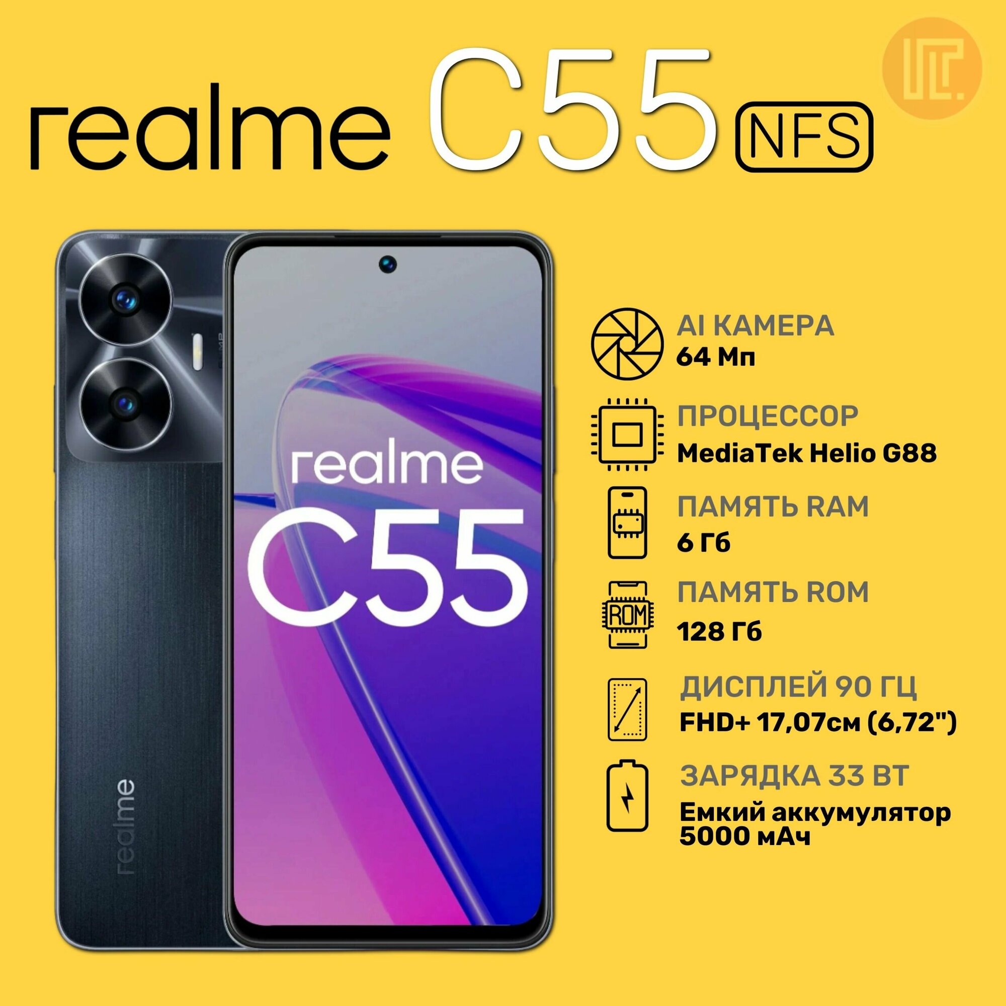 Смартфон Realme C55 6/128 ГБ черный {6.72"}