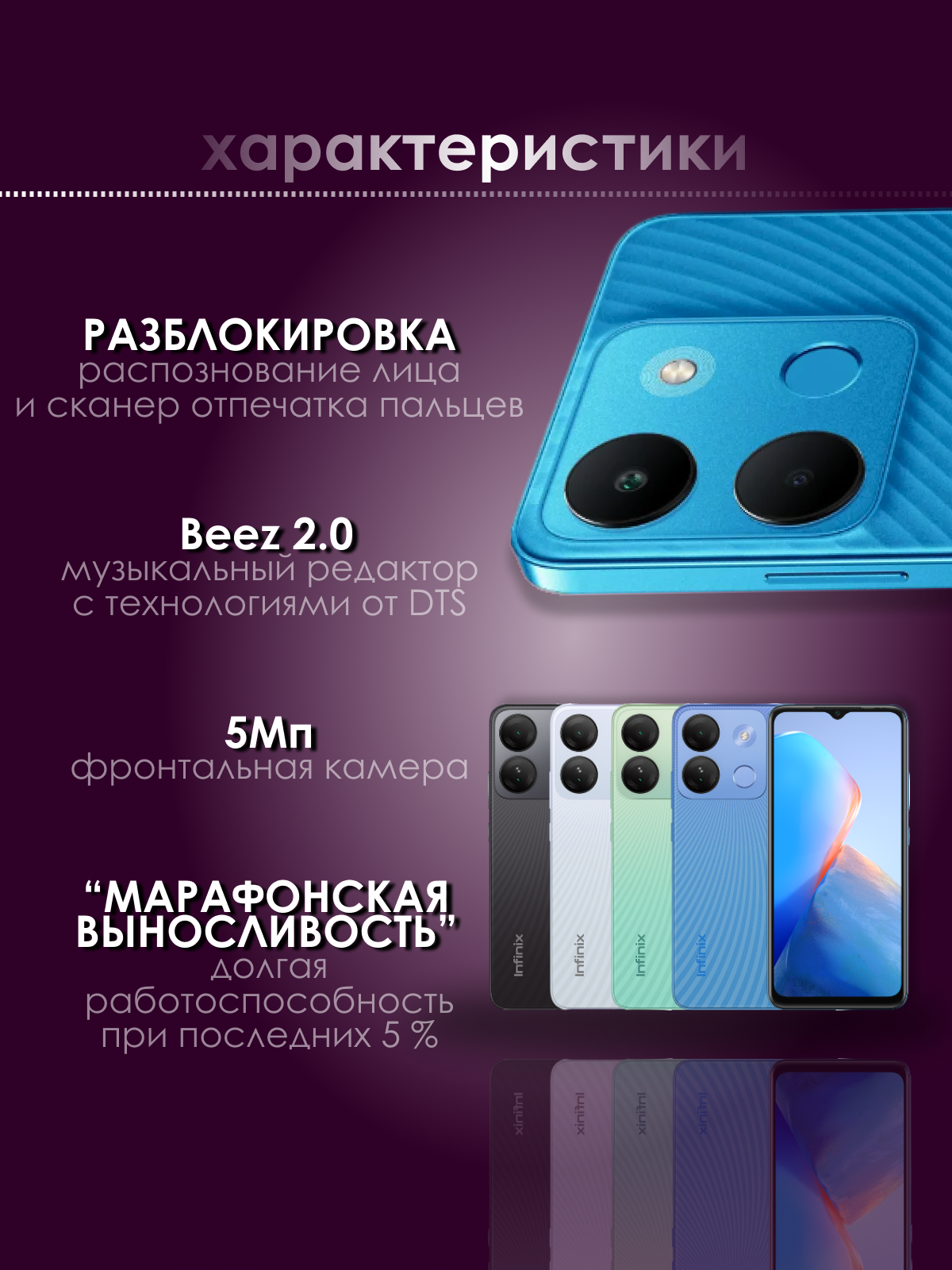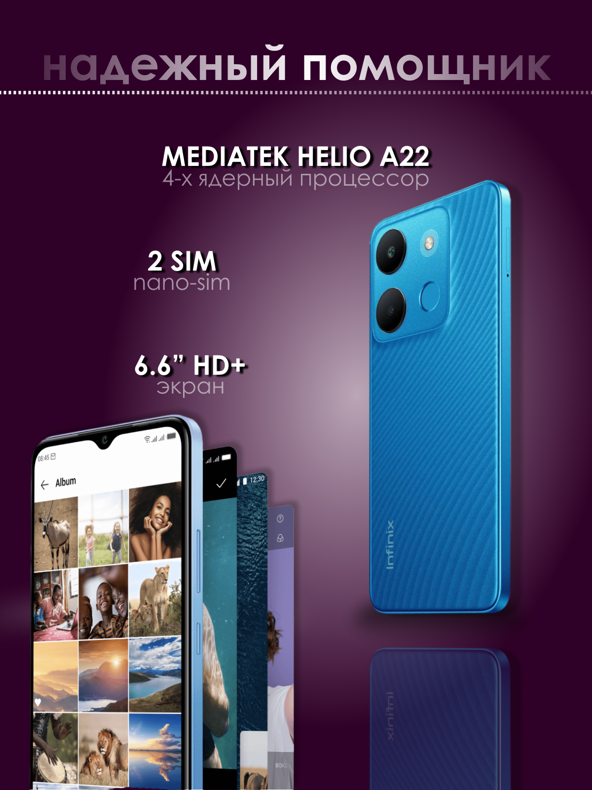 СохранитьСмартфон Infinix SMART 7 3/64Gb синий интересное: