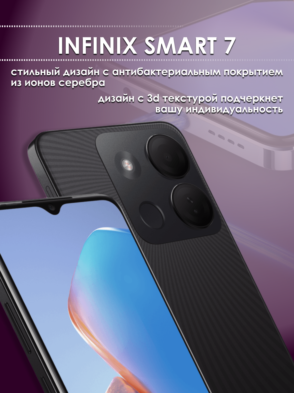 Смартфон Infinix Smart 7 3/64 ГБ, 2 nano SIM, polar black