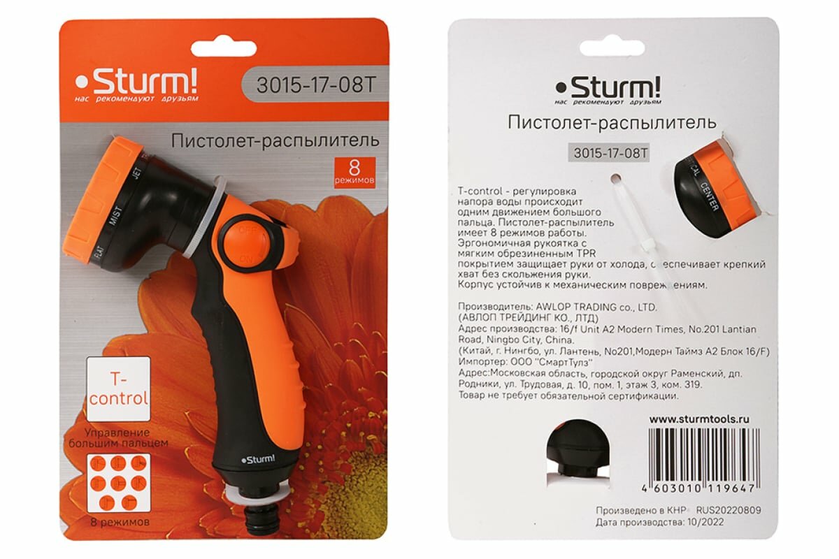 Пистолет для полива STURM 3015-17-08T (STURM)