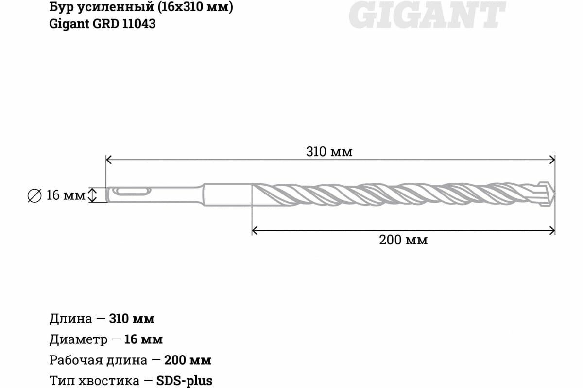 Бур усиленный (16x310 мм) Gigant GRD 11043 16062674