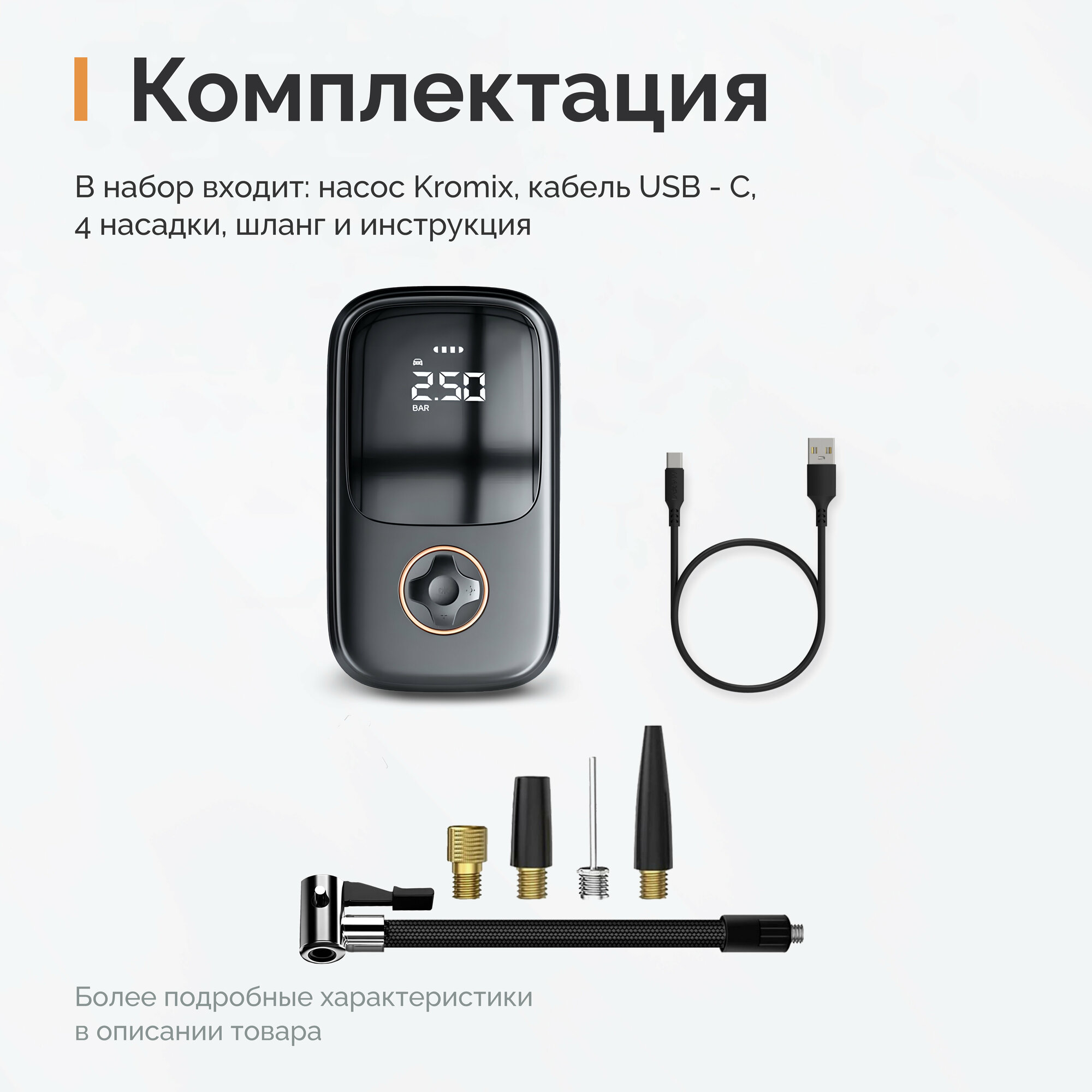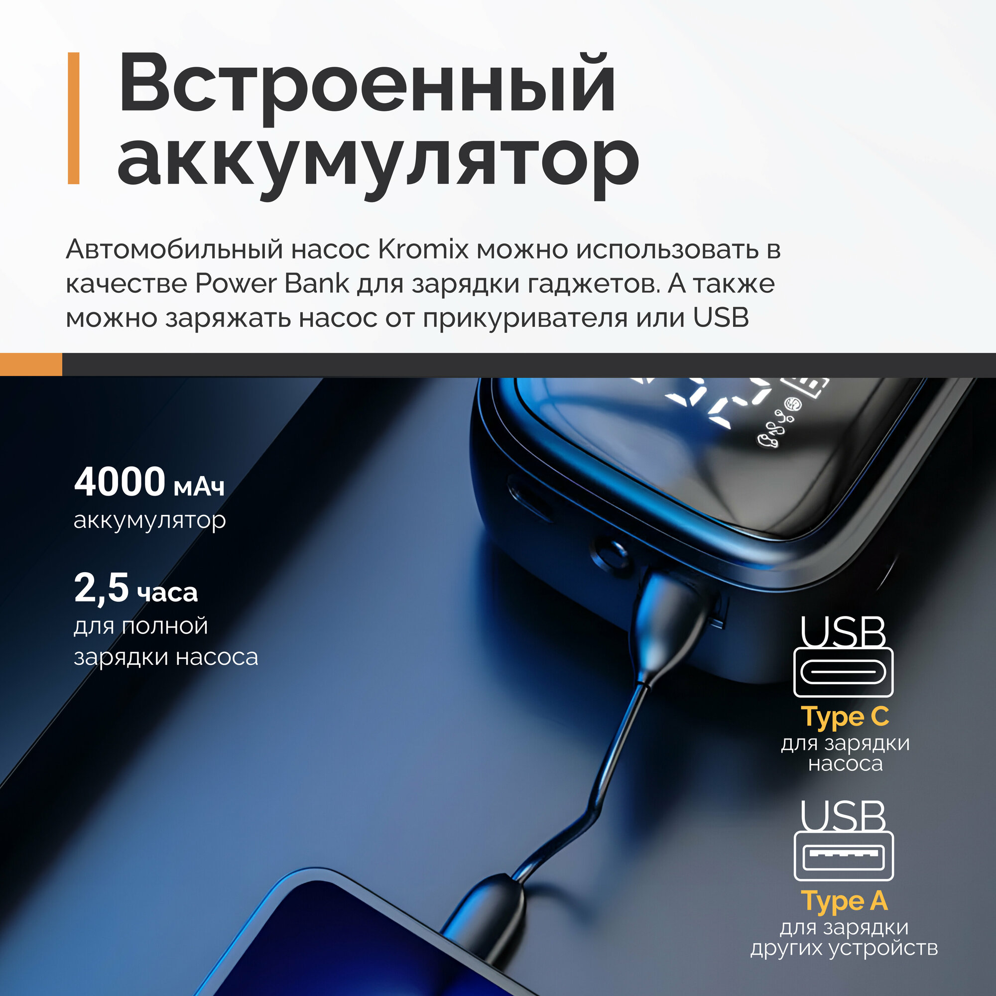 Насос электрический Kromix K506, компрессор автомобильный с аккумулятором интересное: