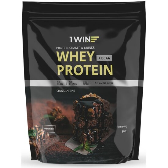 Купить 1WIN Протеин Whey Protein, Сывороточный белковый коктейль для похудения, без сахара, Шоколадный пирог, 900 г.