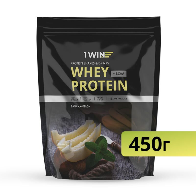 1WIN Протеин Whey Protein, Белковый коктейль для похудения, без сахара, Банан-Дыня, 450 г.