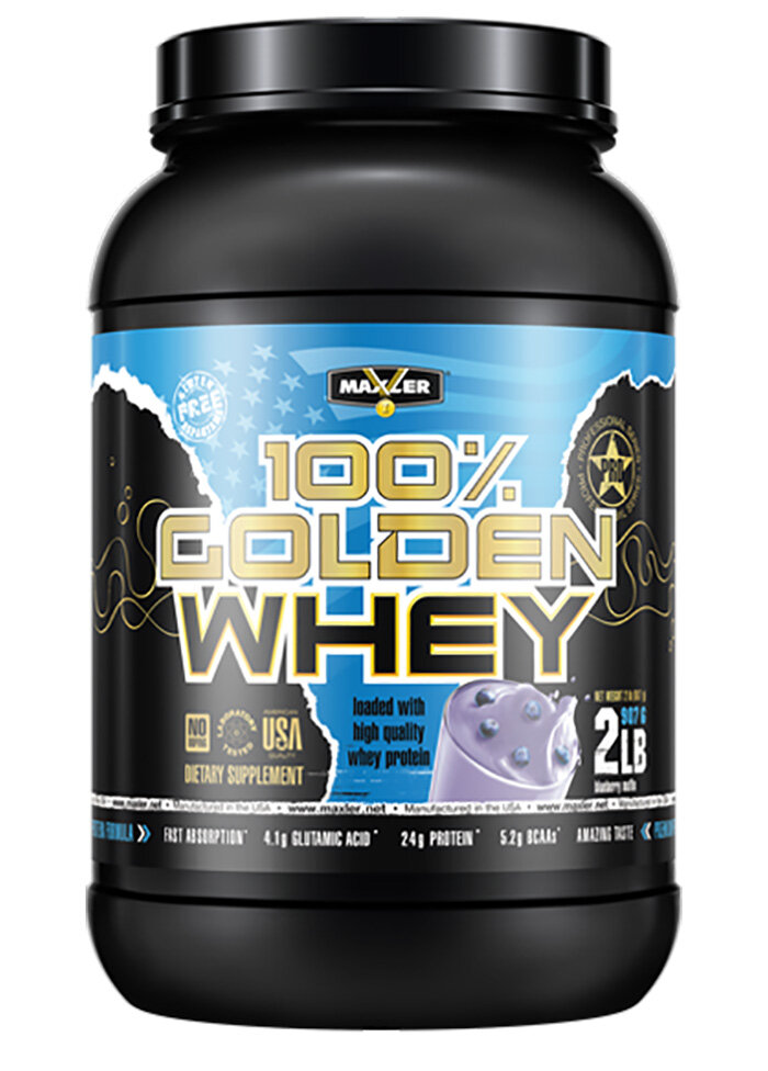 Чистый сывороточный белок премиум класса 100% Golden Whey Protein 908 гр 2 lb (Maxler) Черничный маффин